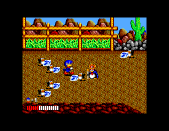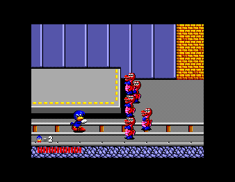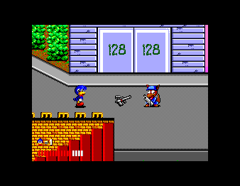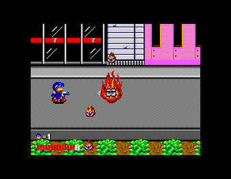 Once again a girl was captured by the evil ones. The blue dynamite duck punches and shoots its way through the streets to rescue her.